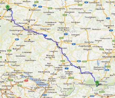 Die Anfahrtstrecke ist ca. 347 km